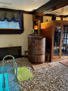 Овальная фитобочка из кедра - это мини парная, которую можно использовать не только в спа-салонах, но и дома. Овальная модель более просторна и удобна в использовании. Толщина стенок составляет 25 мм. Верхний скос делает положение головы более комфортным и улучшает обзор. Она оборудована откидными створками, дверцей и отверстием для головы. Во время парения человек сидит внутри кедровой бочки, а голова находится снаружи. Благодаря этому исключается возможность перегрева. Подлокотники из кедра, встроенные ручки на створках и двери делают эксплуатацию более удобной.