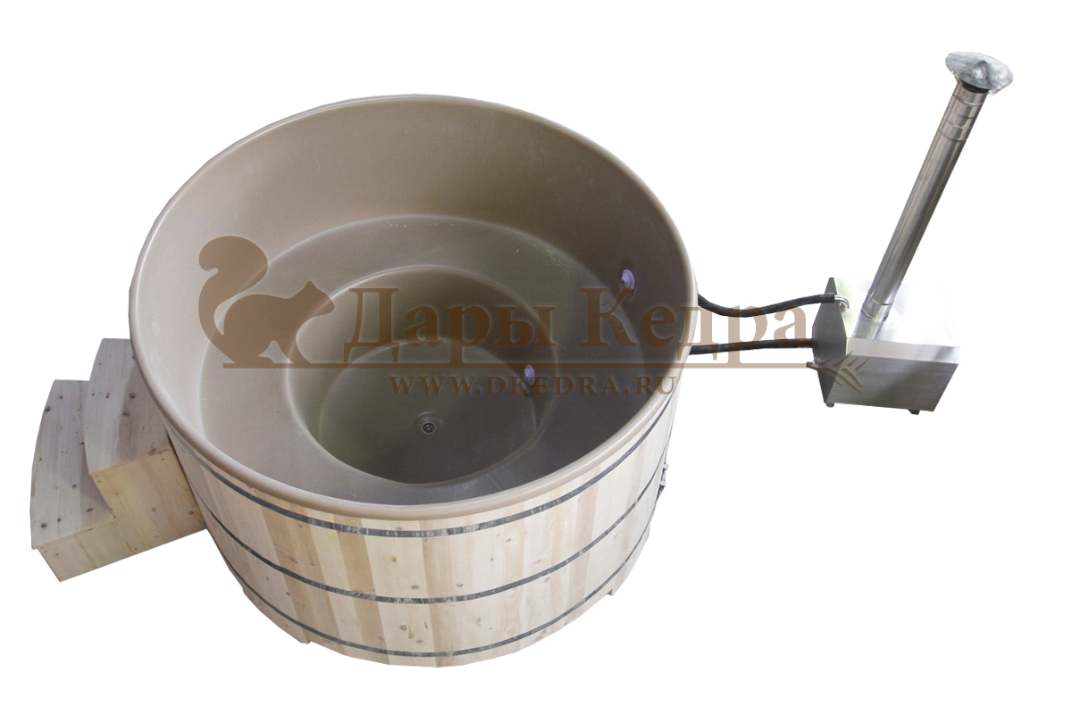 Фурако круглая из кедра с термопластиковой вставкой со встроенной печью Это уличная подогреваемая купель с круглой внутренней чашей из термопластика. Для удобства пользования купель оборудована лавочками, приставной и внутренней лестницей. Нагрев воды происходит за счет встроенной печи, которая находится внутри купели за перегородкой. В комплектацию этой модели входит савок с длинной ручкой, который позволяет извлекать угли после эксплуатации изделия. Термопластик устойчив к воздействию температур, облегчает уход за купелью и увеличивает срок ее службы. Парение на свежем воздухе – это отличный способ укрепить здоровье и поддержать организм в тонусе.